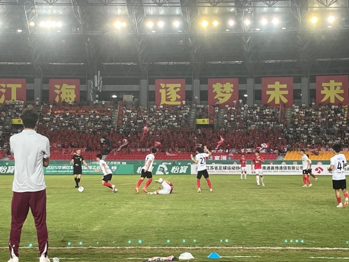 今天晚上,2025华润饮料#中乙联赛#第17轮比赛打响,上海海港富盛经开队在客场挑战南通海门珂缔缘。本场比赛,成耀东指导担任主教练,于海担任助理教练。比赛伊始,双方打得十分开放,先是对手直接任意球打门被门将李智良单手托出,不久后,王淞的连续两次打门遗憾未能进球。第34分钟,范威阳后场长传给张俊杰,后者调整后冷静抽射破门,打入个人职业联赛的首粒进球。易边再战,第65分钟,主队利用一次角球扳平了比分,此后小将们也有过不错的机会,可惜补时阶段张慧宇的单刀射门被对方门将化解。最终,海港富盛经开队客场1比1遗憾战平南通海门珂缔缘队。